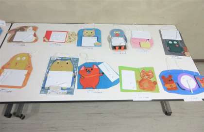 5年生の図工「切り分けた形から何つくる?」の作品展示です。