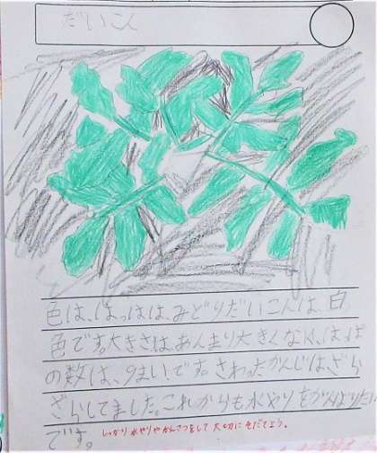 自分たちの野菜畑を観察した日記です。小さな種から育て、大根ができはじめました。