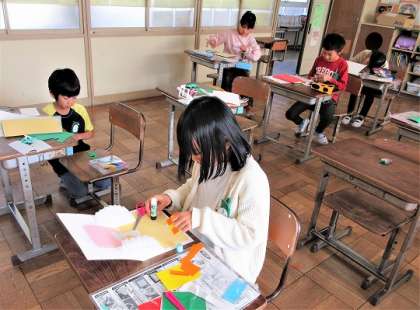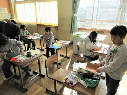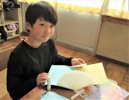 飛び出す仕組みを使って、気持ちをどのように表すか考えながら作品づくりをしていました。