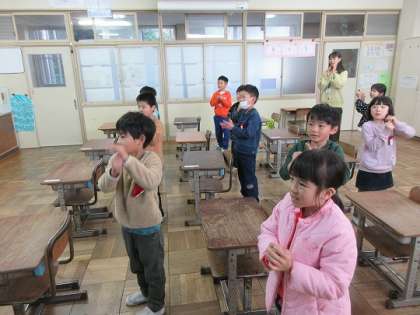 冬の歌に合わせ、楽しく踊っています!