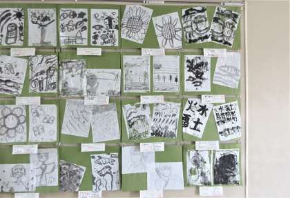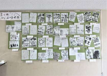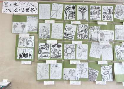 6年生の図工「墨と水から広がる世界」の作品展示です。