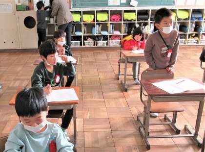 1年生の算数では、旭東小計算検定の練習問題に取り組んでいました。