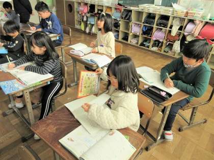 2年生の算数では、2学期の復習問題に取り組んでいました。