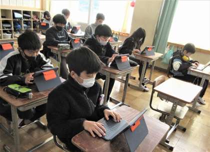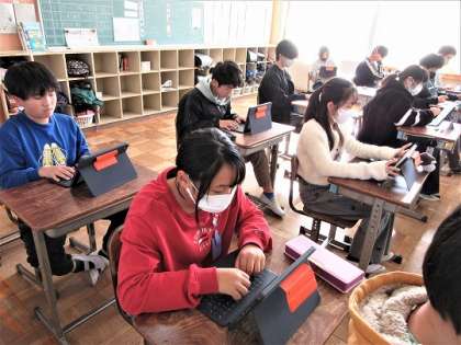 6年生が卒業文集に載せる文章作成をしていました。