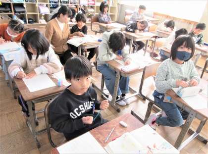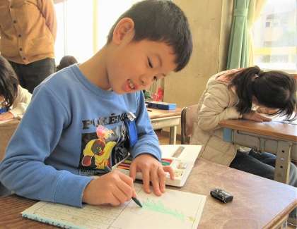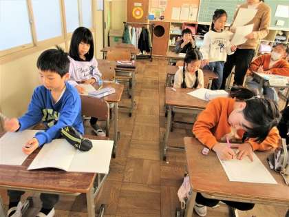 今日は、各自が見つけた冬をカードに書いていました。