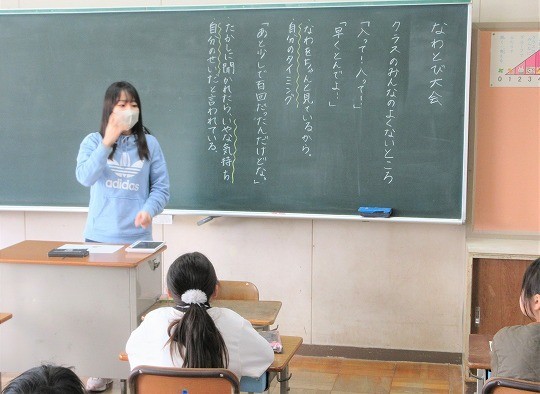 3年生の道徳では、「なわとび大会」を読んで考えていました。