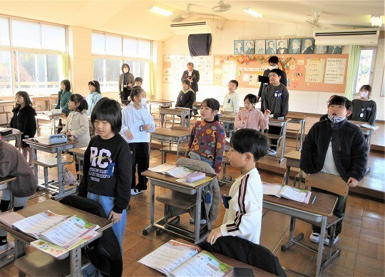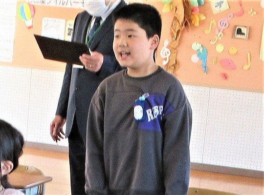 前に歌ったグループの歌を聞いて、感想を伝え合い、全員で歌っていました。