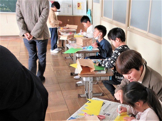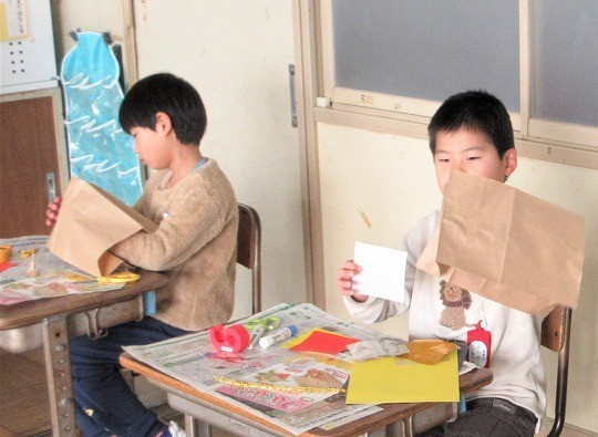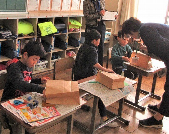 袋をどのように使おうかと考えながら、楽しそうに作っていました。