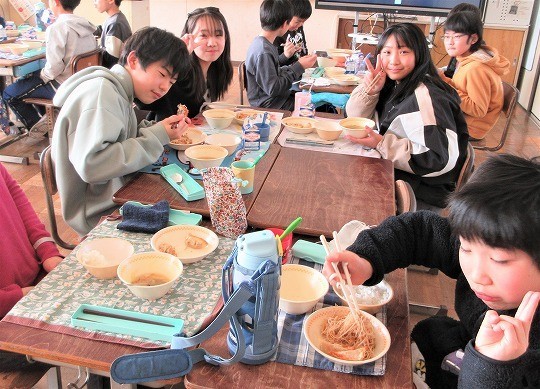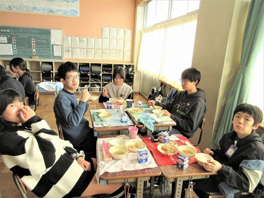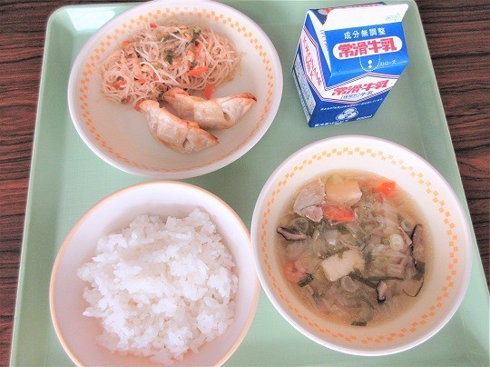 今日のメニューは、ご飯、牛乳、焼き餃子2個、ビーフン炒め、ハッポウタンでした。