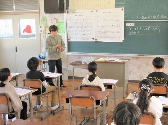 4年生の音楽では、「ノルウェー舞曲第2番」を学習していました。