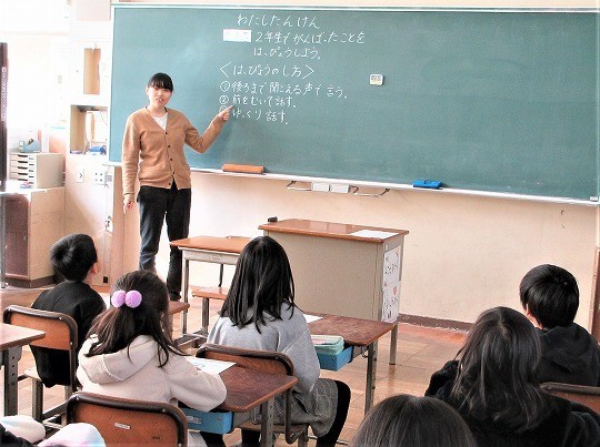 2年生の生活科では、「2年生でがんばったこと」の発表会をしていました。