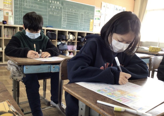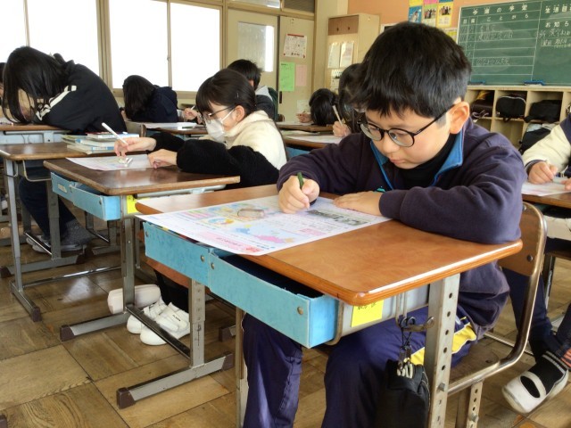 5年生は、学習のまとめとしてテストに取り組んでいました。