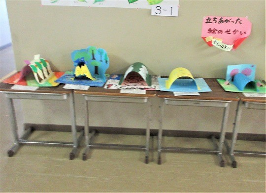 3年生の図工「立ち上がった絵の世界」の作品展示です。