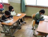 学習、行事、遊びなど、楽しかったことを思い出して、話す題材を考えていました。