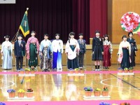 5年生が卒業式に向けて、パンジーの準備をしていました。