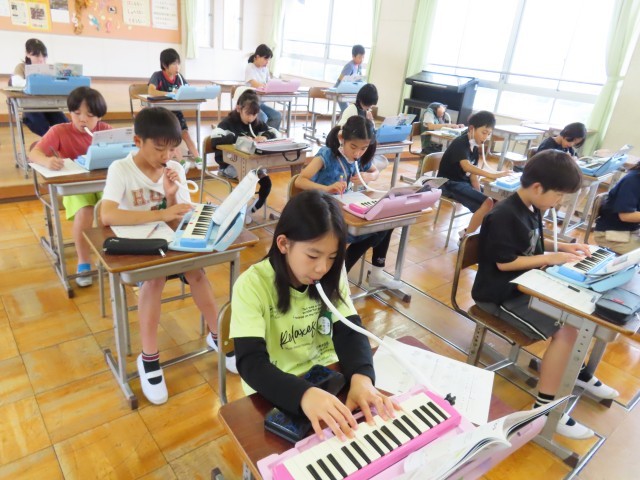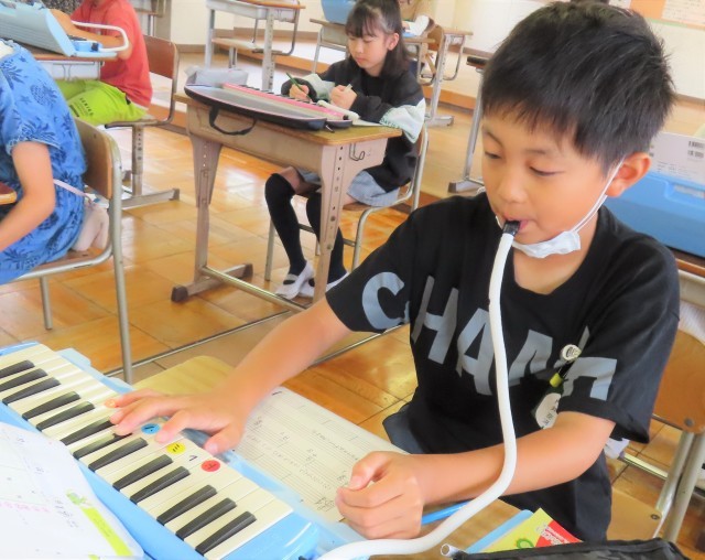 6/10(火) 和音に合わせて 3 公開日 2025/06/10 更新日 2025/06/10 旭東+(プラス) みんな小さなベートーベンやシューベルトになって、鍵盤ハーモニカで音を出しながら旋律づくりをしていました。