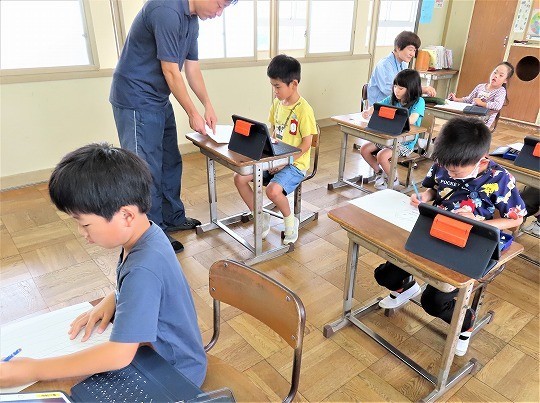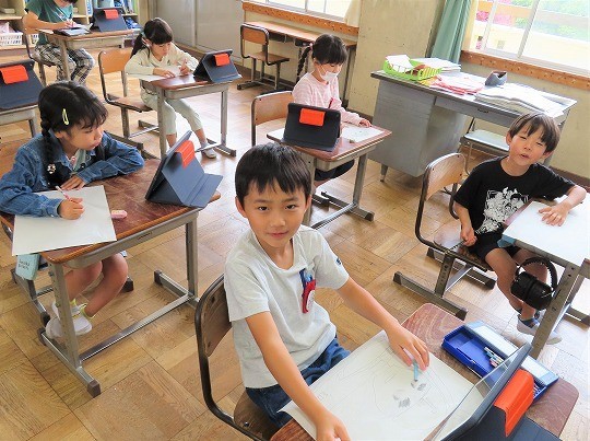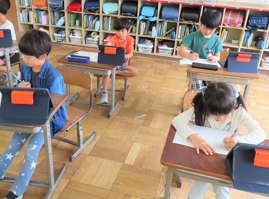 かきたい人や物を大きくかくように意識しながら描いていました。