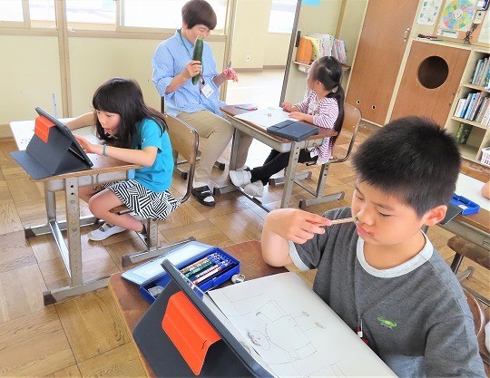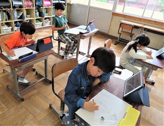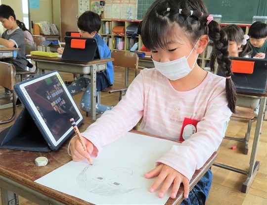 心に残った出来事をタブレットの画像などを参考にして描いていました。