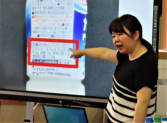 ボトルについている炭水化物の表示で砂糖の量が分かることも学習しました。