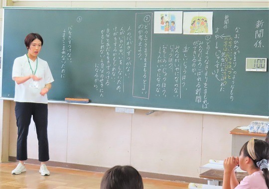 3年生の道徳では、「新聞係」を読んで考えていました。