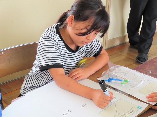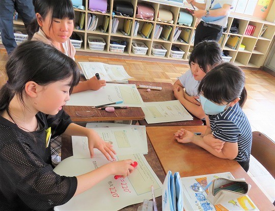 今日は、180度をこえる角の大きさの測り方を考えていました。