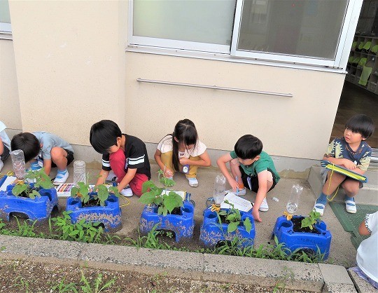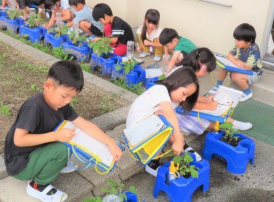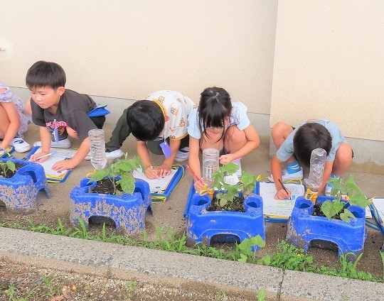1年生の生活科では、アサガオを育てながら、その成長を記録しています。