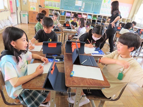 今日は、実際に考えた質問を使って友だちにインタビューをしていました。