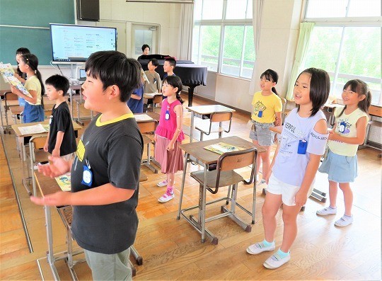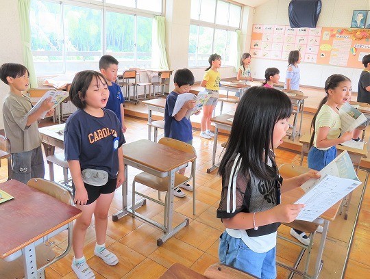 教室の左右で向かい合い、表情を確認し合いながら歌っていました。