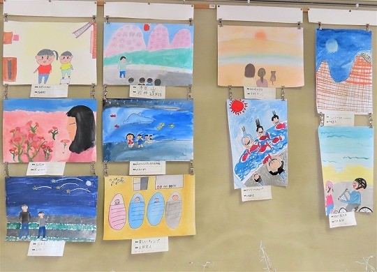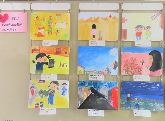 5年生の図工「心に残った あの時 あの場所 私の思い」の作品展示です。