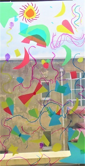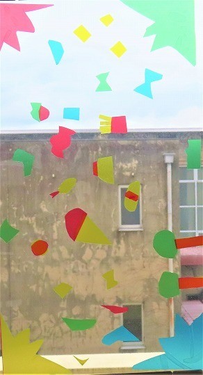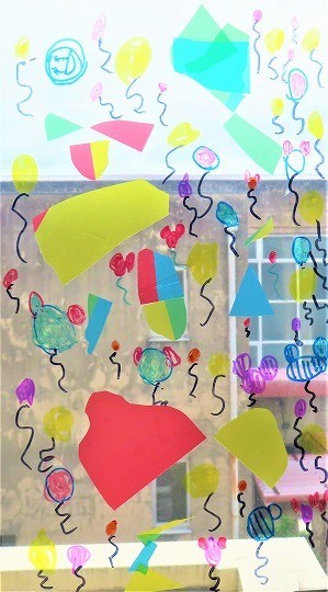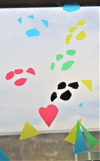 色セロハンを使って、光を透かして見られる作品づくりができました。