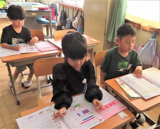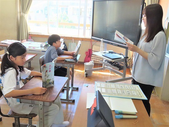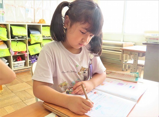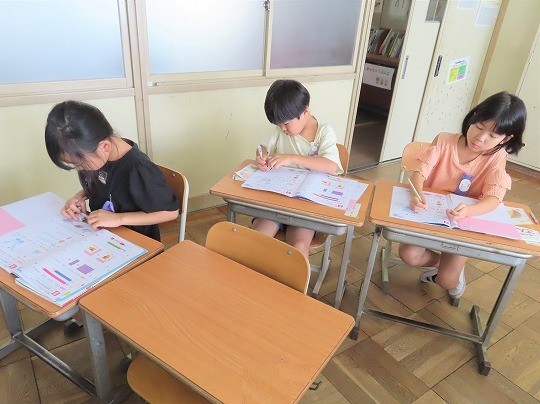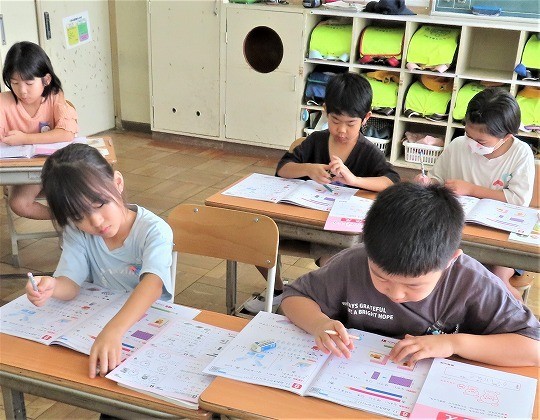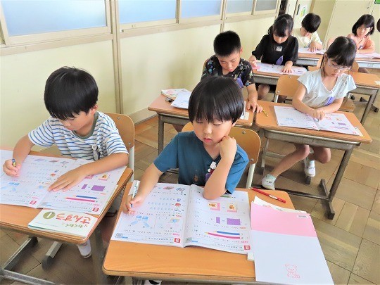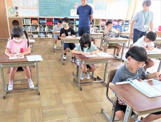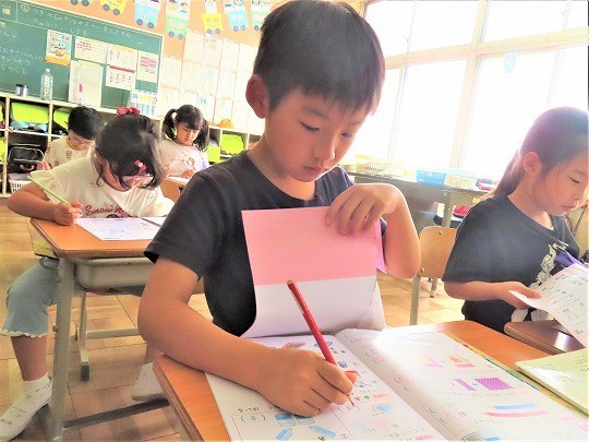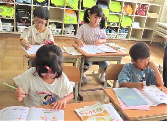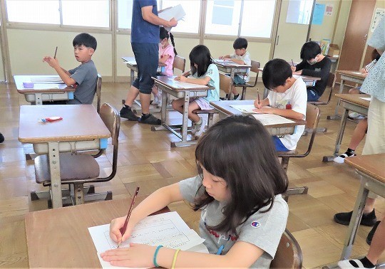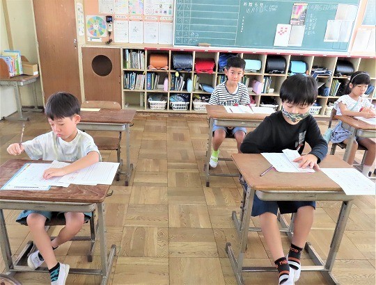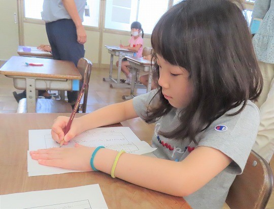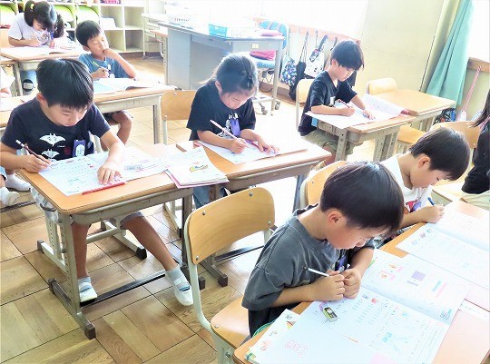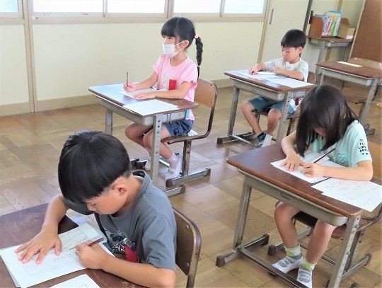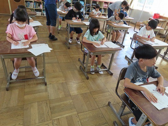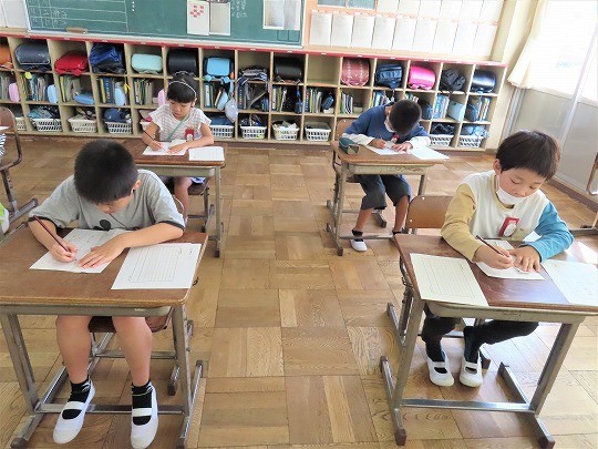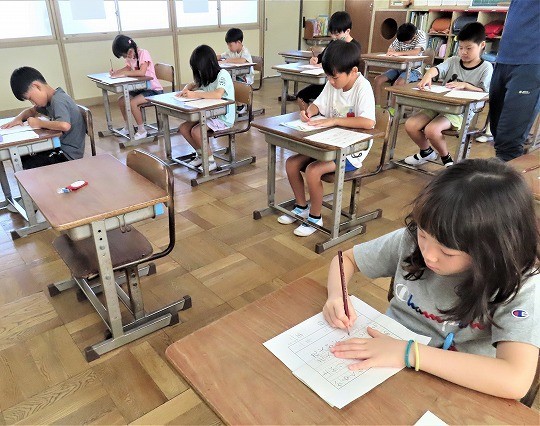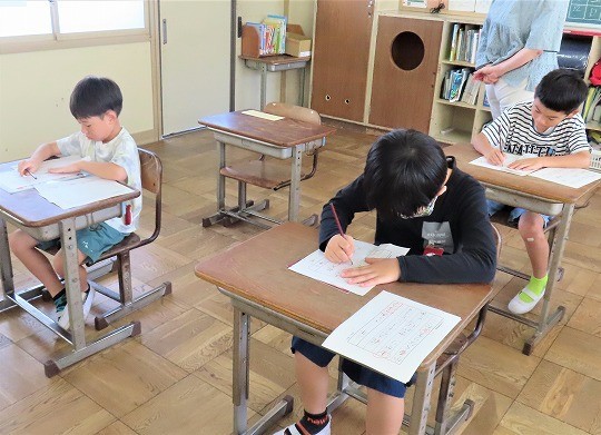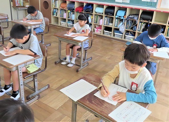 1年生は、朝の活動時間に漢字の学習をしていました。