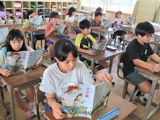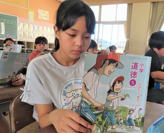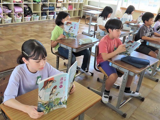 5年生の道徳は、「横浜港のガンマンの思い」を読んで考えていました。