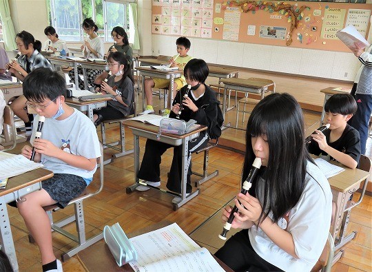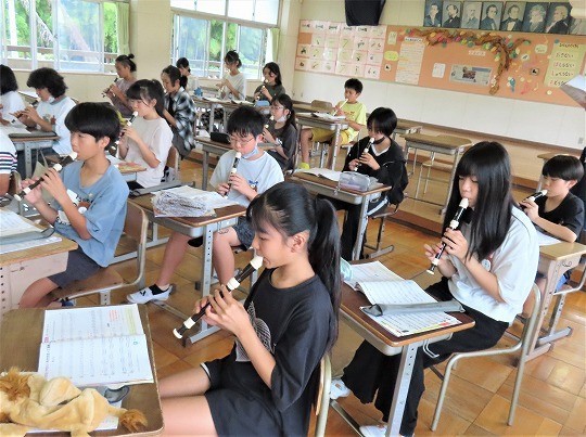 パートに分かれて、旋律の重なりを聞きあいながら、リコーダー演奏の練習をしていました。