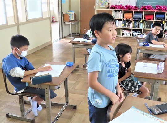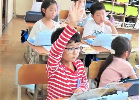 1年生の音楽は、「ひのまる」を学習していました。