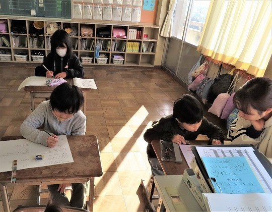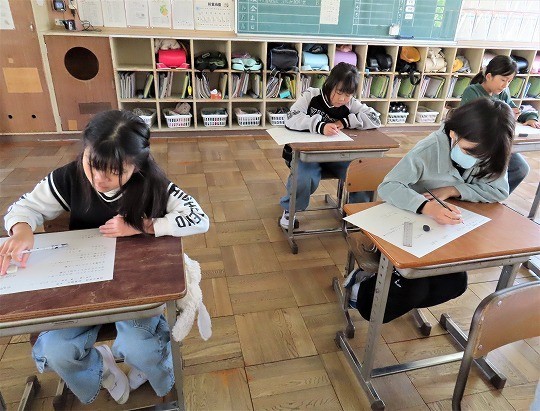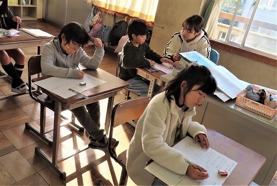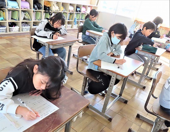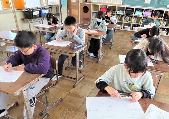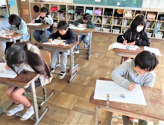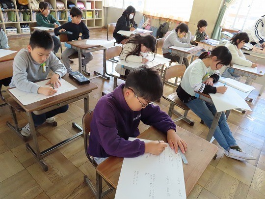 4年生は、朝の活動時間に計算検定の練習をしていました。