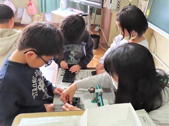 はじめに作った形から1枚動かして、担任が指定した形にするにはどうすればよいか考えていました。