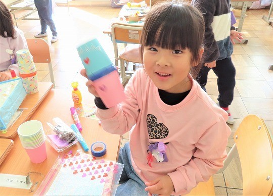 けん玉、マラカス、やじろべいなど工夫をしながら楽しくおもちゃ作りをしていました。