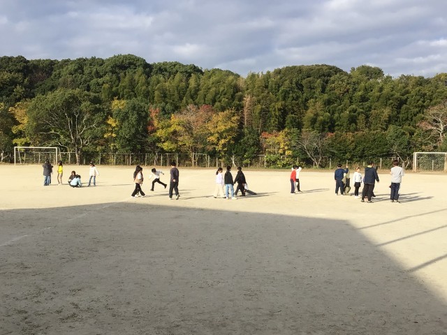 寒い中でも、運動場で元気に取り組んでいます!