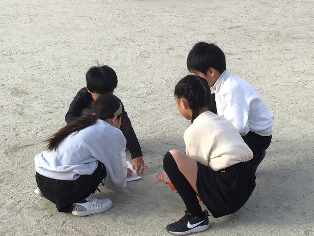 1日のかげの移り変わりを調べています。