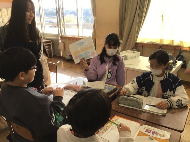 2年生の算数は、箱の中のチョコレートの数をかけ算を使って求める問題に取り組んでいました。