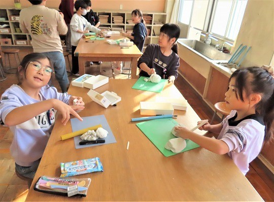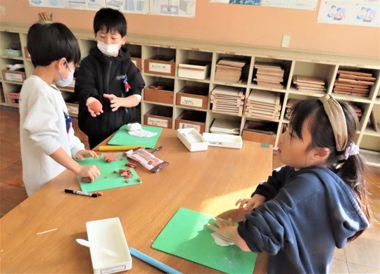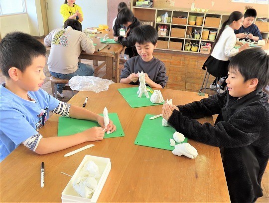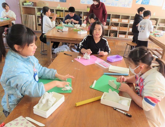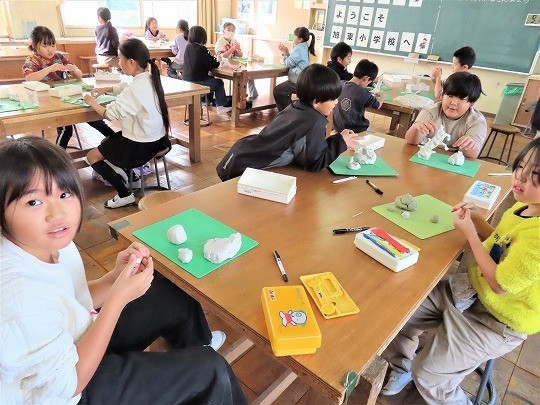 3年生の図工は、「ねんどマイタウン」の作品づくりをしていました。