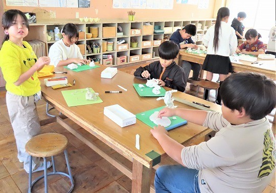 6年生は「一まいの板から」の学習で、テープカッターづくりに取り組んでいます。