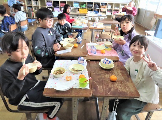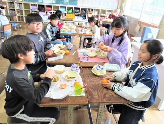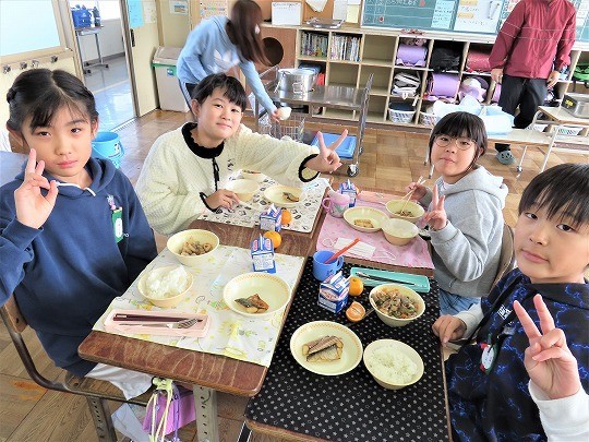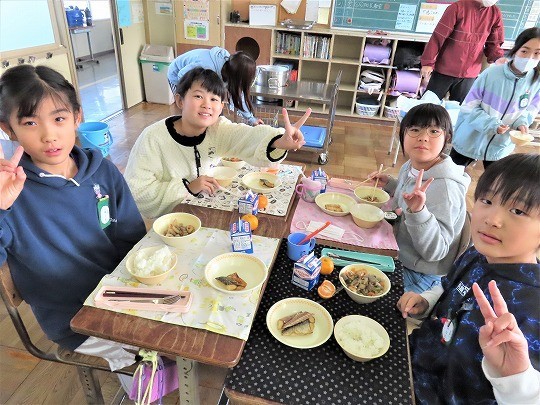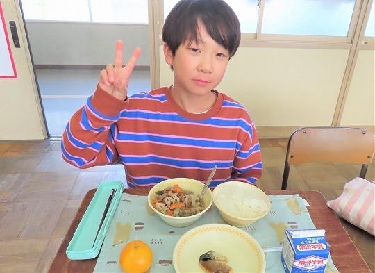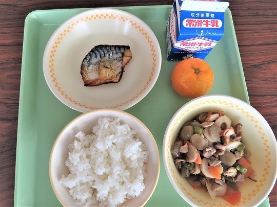 今日のメニューは、ご飯、牛乳、サバの塩焼き、筑前煮、みかんでした。