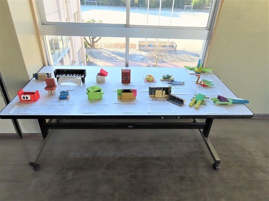 4年生の図工「のこぎりギコギコ」の作品展示です。