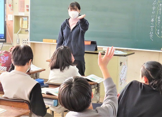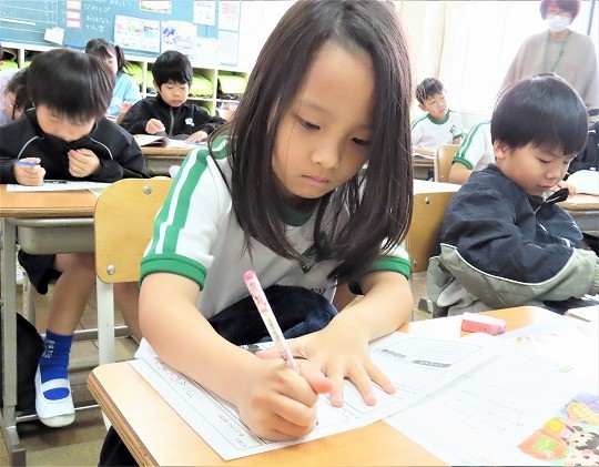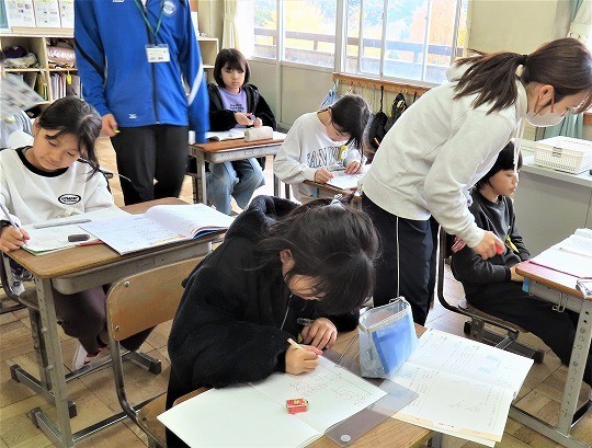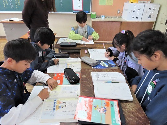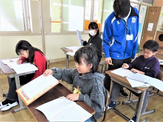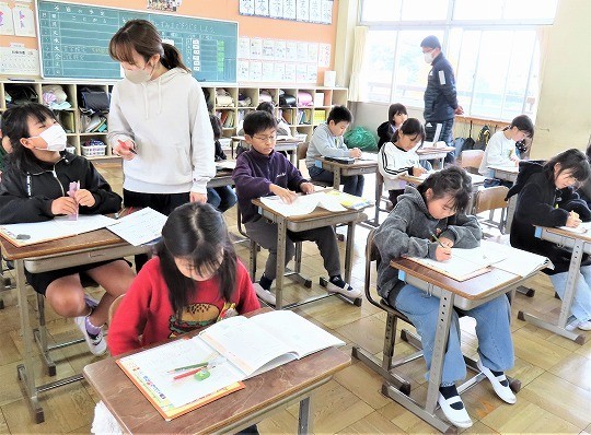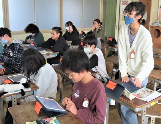 教科書で指定された言葉をすべて使って、相手にわかりやすく伝える文章づくりに取り組んでいました。