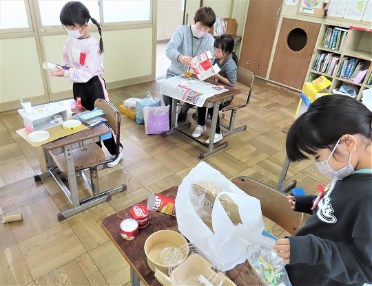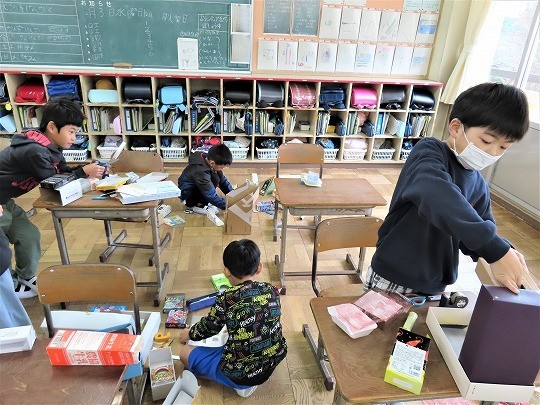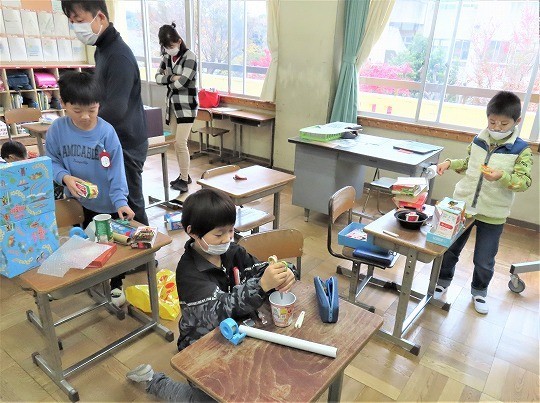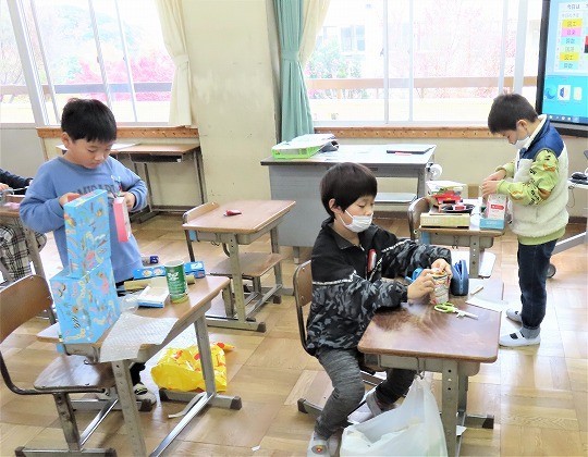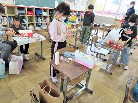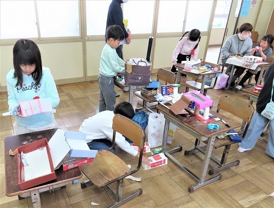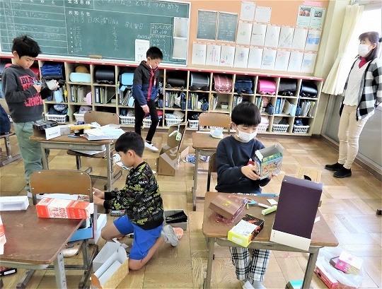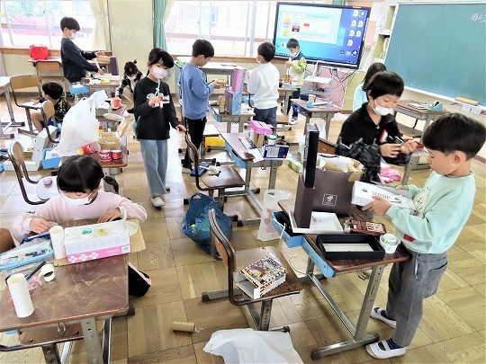 2年生の図工は、「ともだちハウス」の作品づくりをしていました。