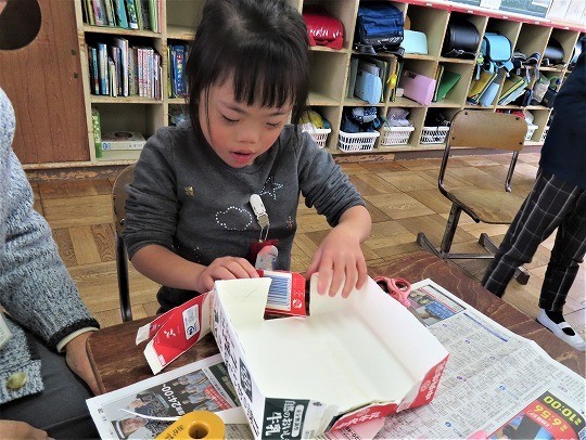 各自が準備した材料を使って、それぞれが想像する小さな友だちがよろこぶ家づくりをしていました。
