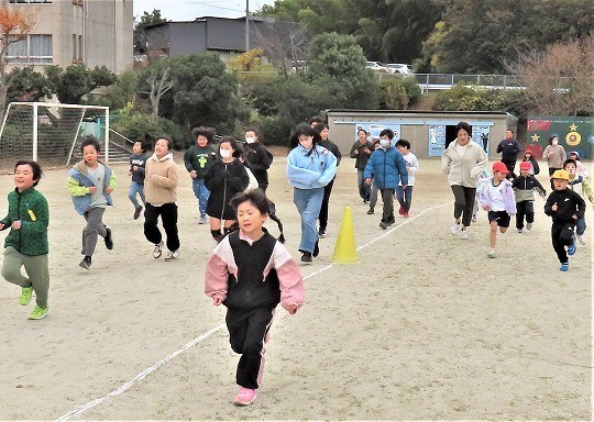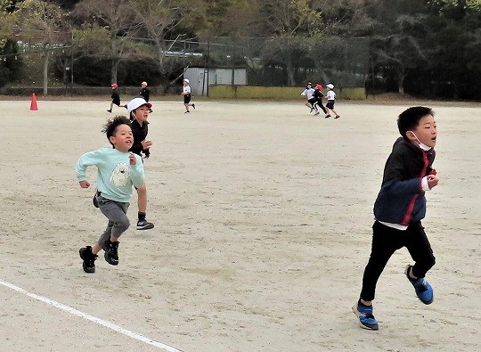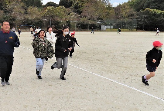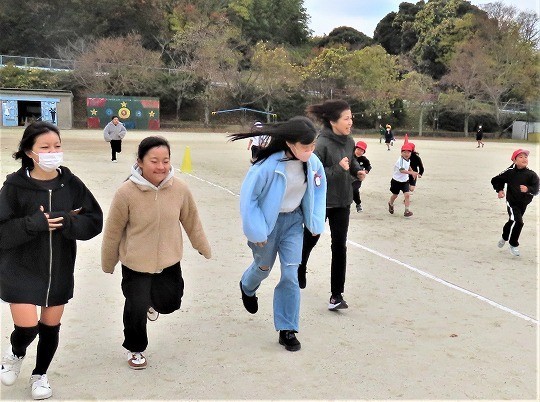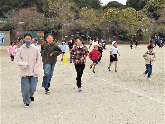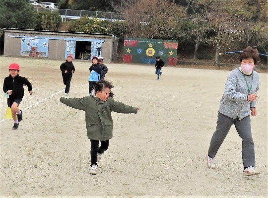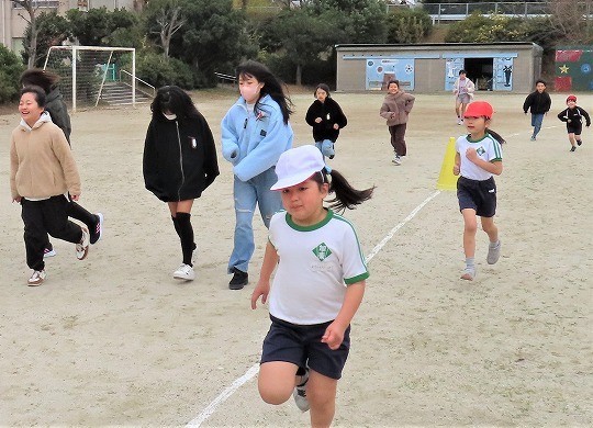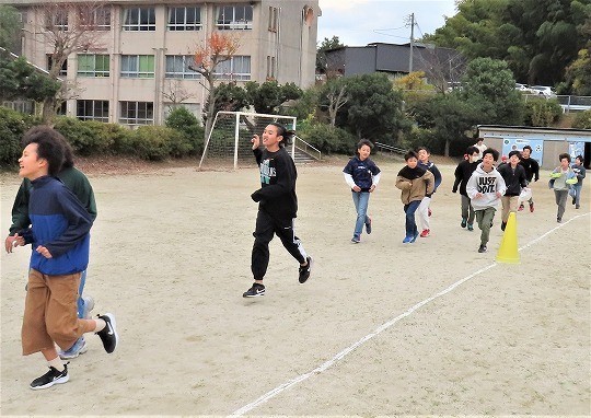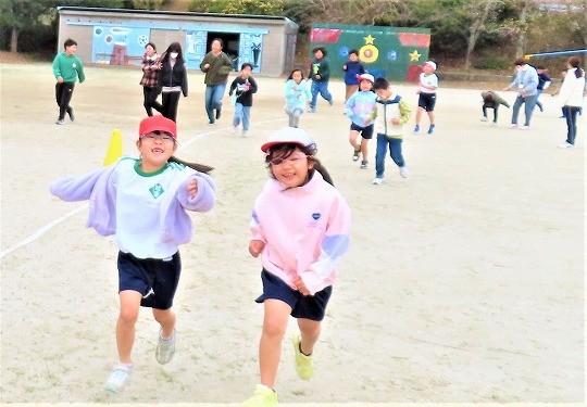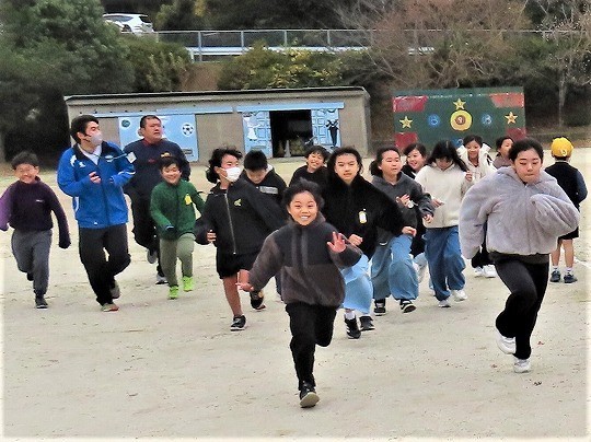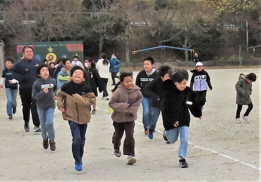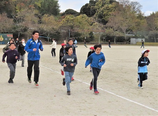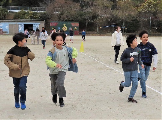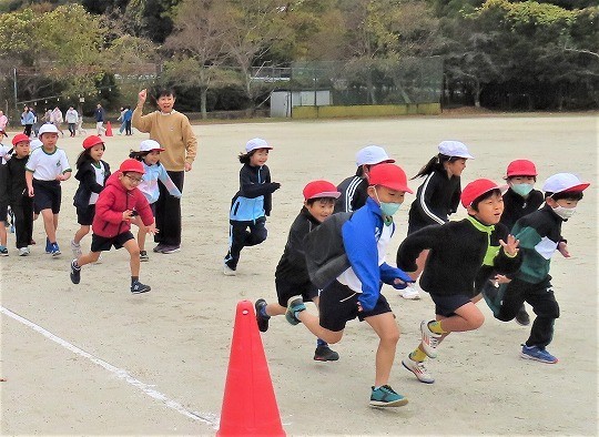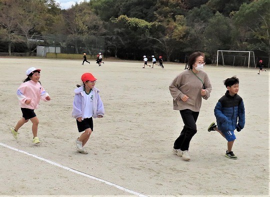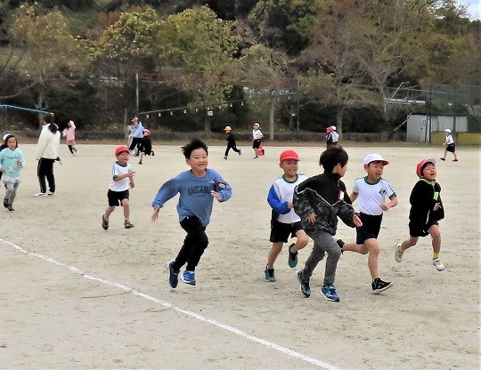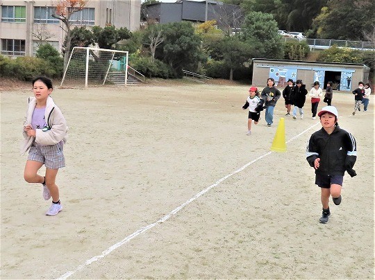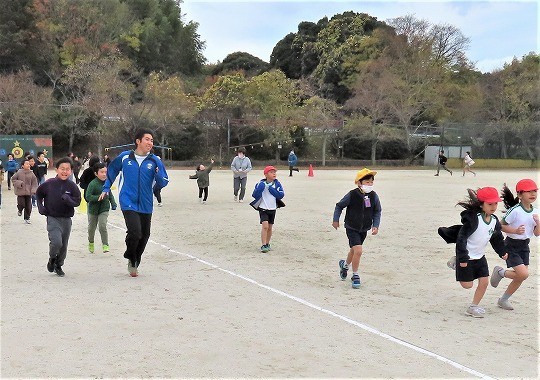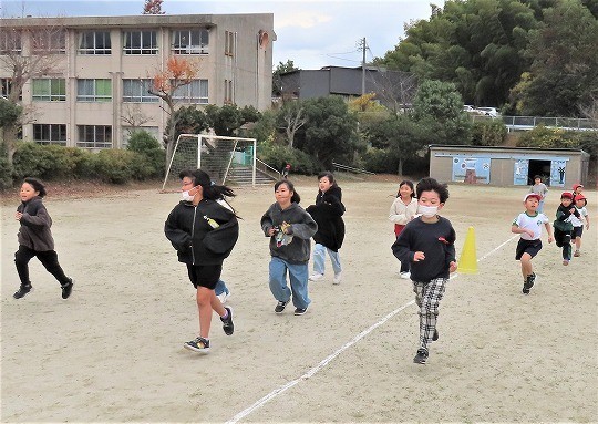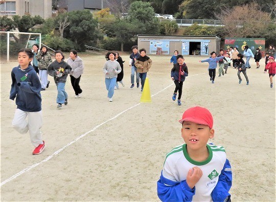寒さに負けず、みんな元気に運動場に出て走っています。