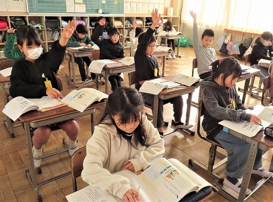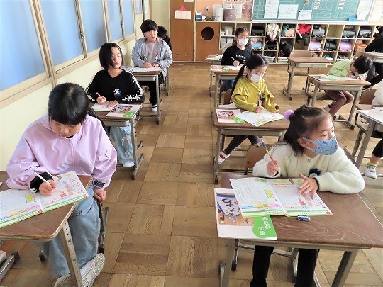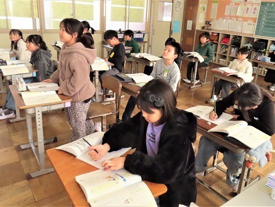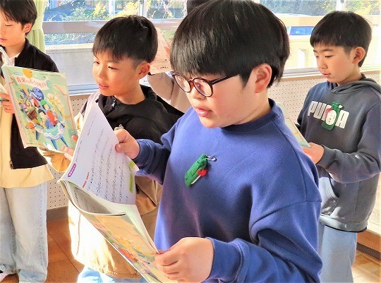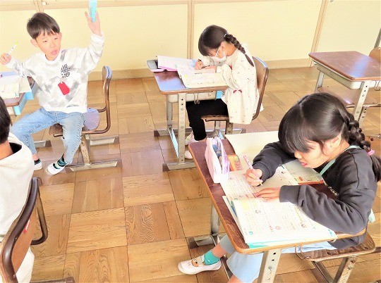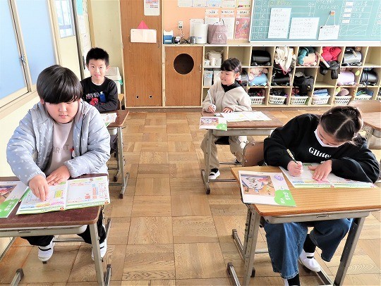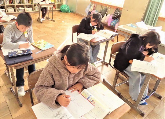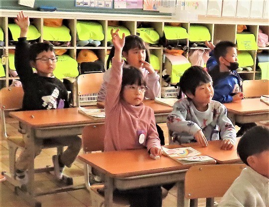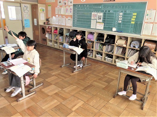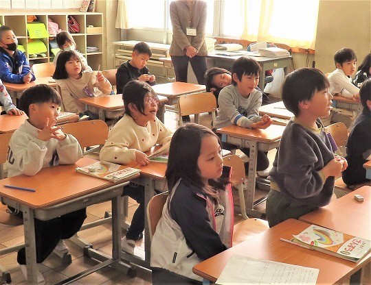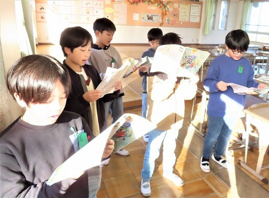 4年生の読み聞かせを聞いて、3年生のわくわくしながら読書を楽しむ姿が見られました。4年生も3年生が楽しめるように読み方を工夫している姿が見られました。