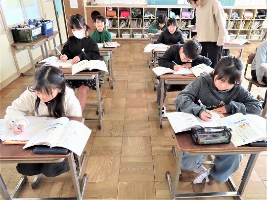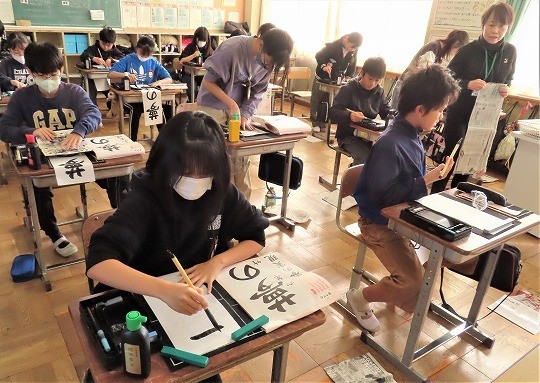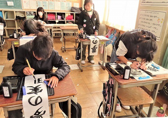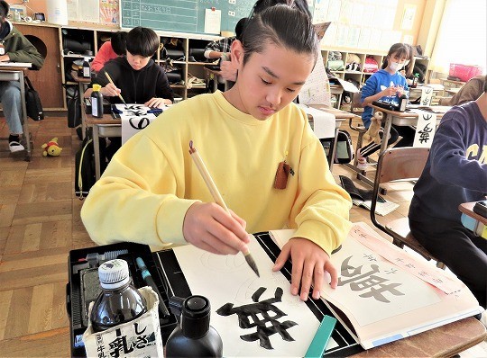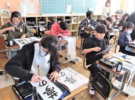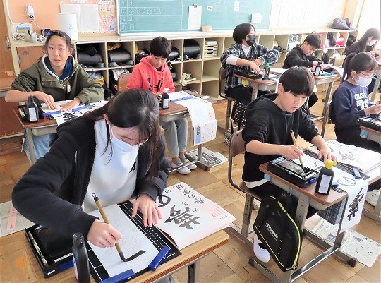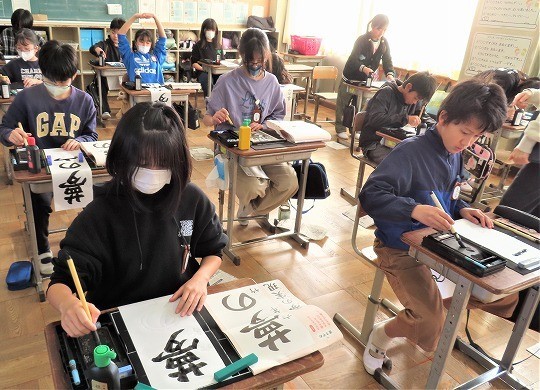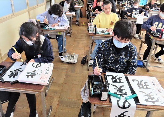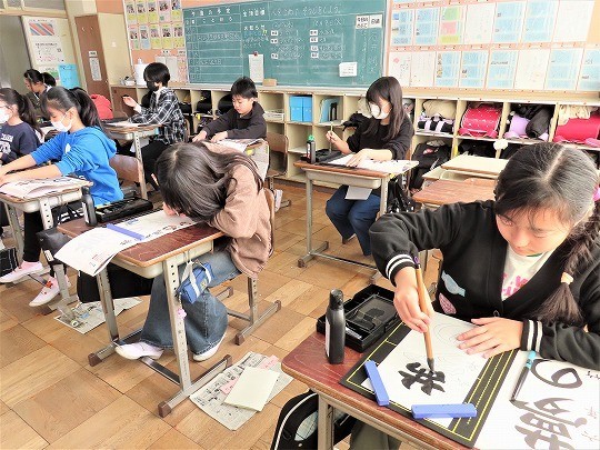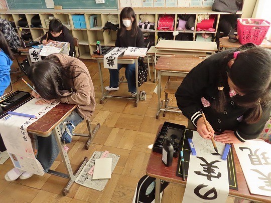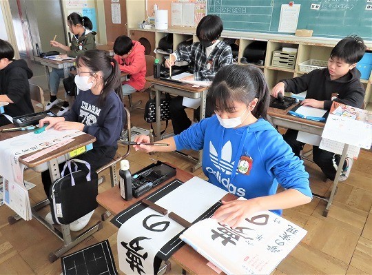 6年生の書写は書き初めの練習をしていました。